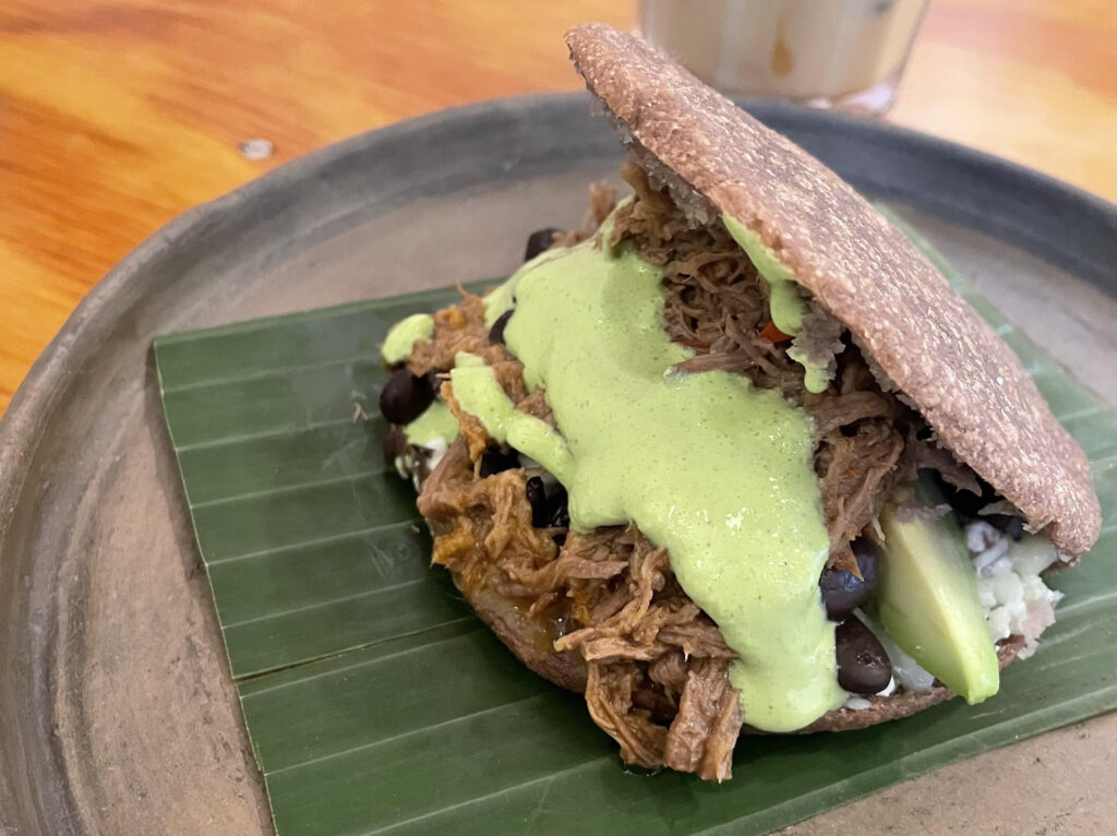 Karla suggested the beef arepa, which came with beans, green sauce, avocado, shredded beef and soft cheese. The balance of flavors and textures is what makes an arepa stand out – and Karla excelled at it. This arepa was simple, savory and loaded with flavor in every bite.