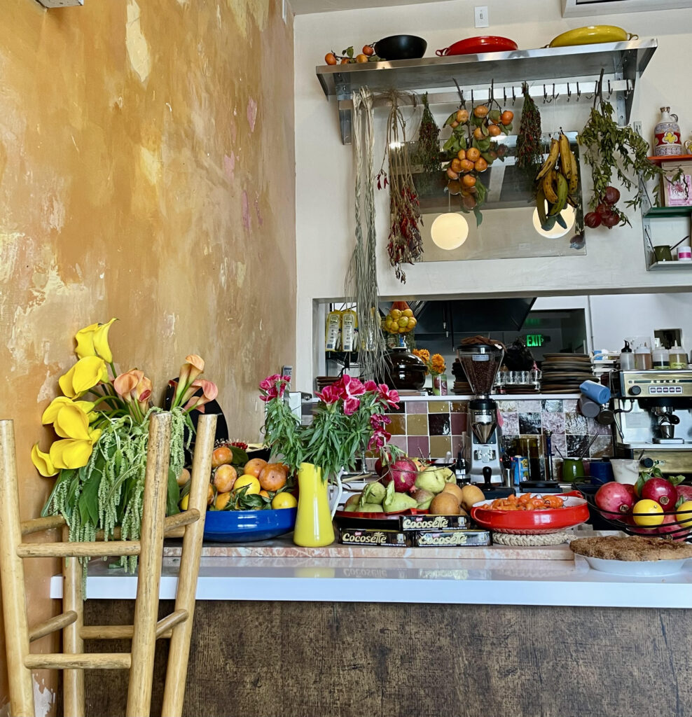 “I was with Sara Marlowe Hall, my unfathomably talented friend who is now creative director of the project, swimming in the Hotel Figueroa pool on a hot summer day three years ago. We lazed about while dreaming up our perfect restaurant that we felt didn’t quite exist in LA yet; a candlelit olive tree-laden somewhere that we could have really good snacks, a carafe of house wine that wouldn’t break the bank, and play rounds and rounds of cards without feeling pressured to leave. After saying all these things out loud, it occurred to me that making that place a reality wasn’t so far out of reach anymore at that point in my career. Together, and with the efforts of the team we’ve built, we’ve been fighting for it ever since.”