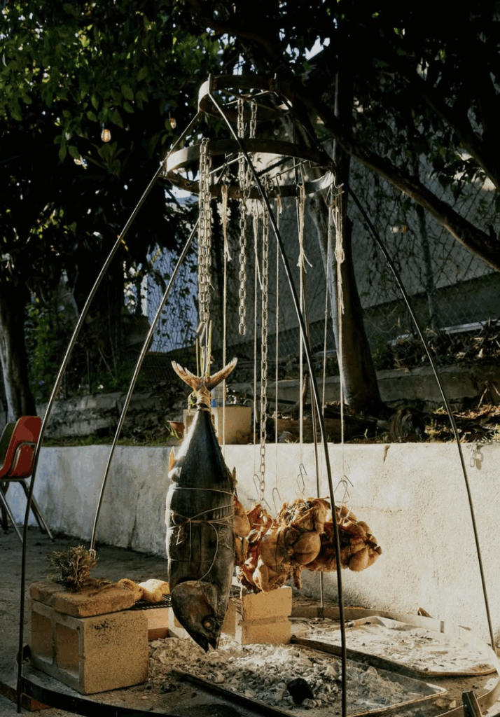 Karla’s curated dinners in her repurposed garage in Echo Park garnered media attention in 2019. The pictures evoked an irresistible urge to be there, showing hanging fish cooked over embers, sometimes on a live-fire grill, and a smiling Karla serving up bountiful trays of colorful food.