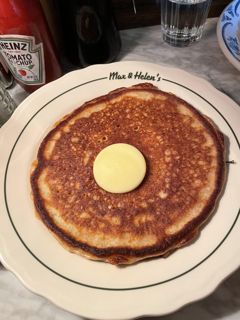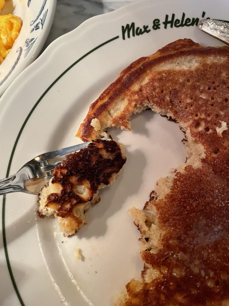 People have commented on Yelp that the pancakes at Max and Helen’s have a citrus note. I couldn’t pinpoint the exact flavor, but something felt off when it was clear as day that this was not a buttermilk pancake.