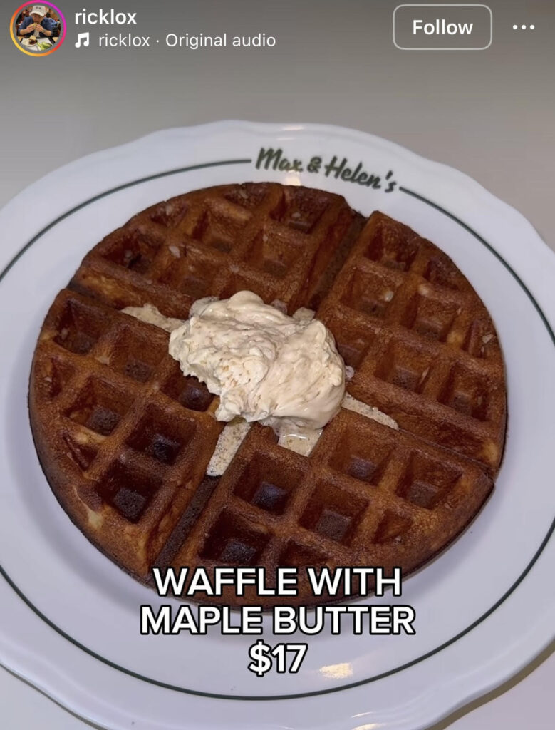 As the guys next to me spread the maple butter on their waffles, I followed suit. Do you know that feeling when you eat something, you have a hunch is not going to feel good after but you keep eating it anyway? That’s exactly what happened with the maple butter. It was so salty I could feel it in my stomach five hours later. I was expecting it to have a different consistency, just like in those TikTok videos. Clearly, their morning batch was different that day. 😭😭