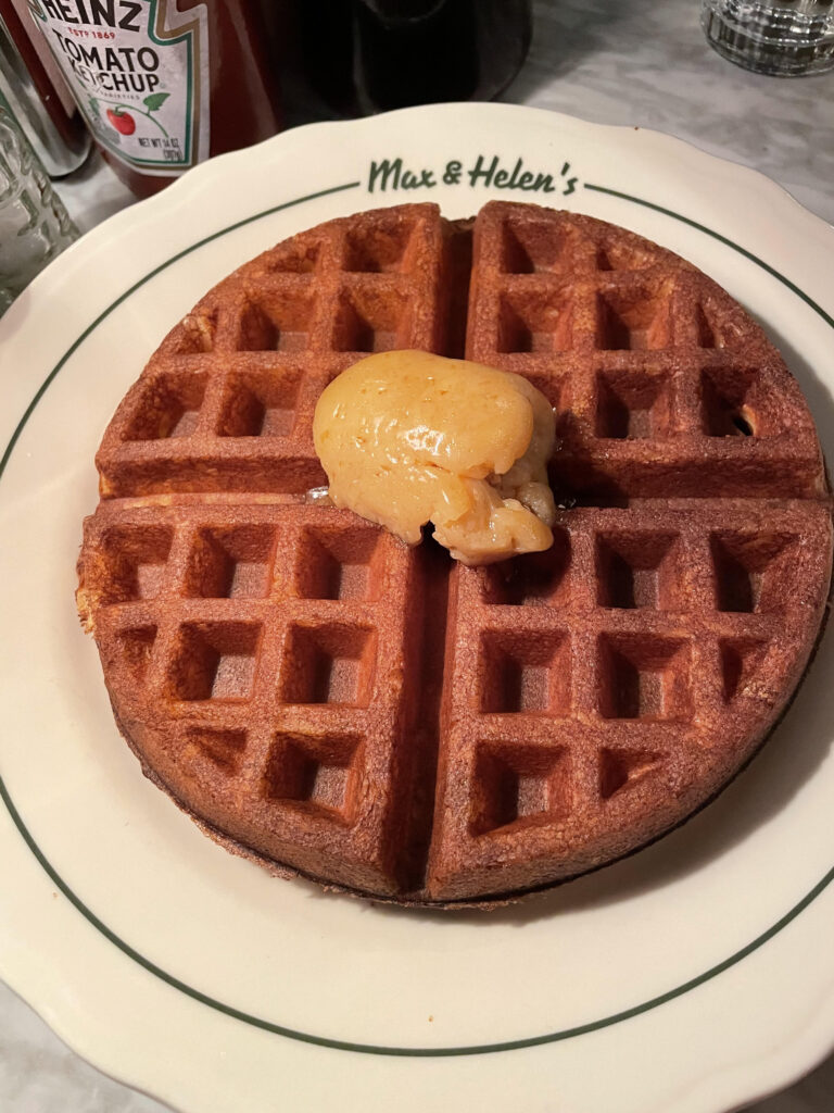 The hallmark of a good waffle lies in its soft texture, crispy edges and a flavor that doesn’t rely on syrups, and Max and Helen’s checked all of these boxes, especially texture-wise.